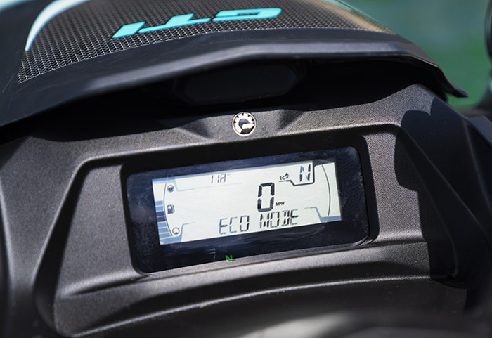 Conta com compartimento estanque para celular, sistema LinQ de engate traseiro, assento Ergolock bi-partido, modos de pilotagem ECO e Sport, amplo compartimento frontal de 144 L e sistema de áudio Premium BRP opcional.